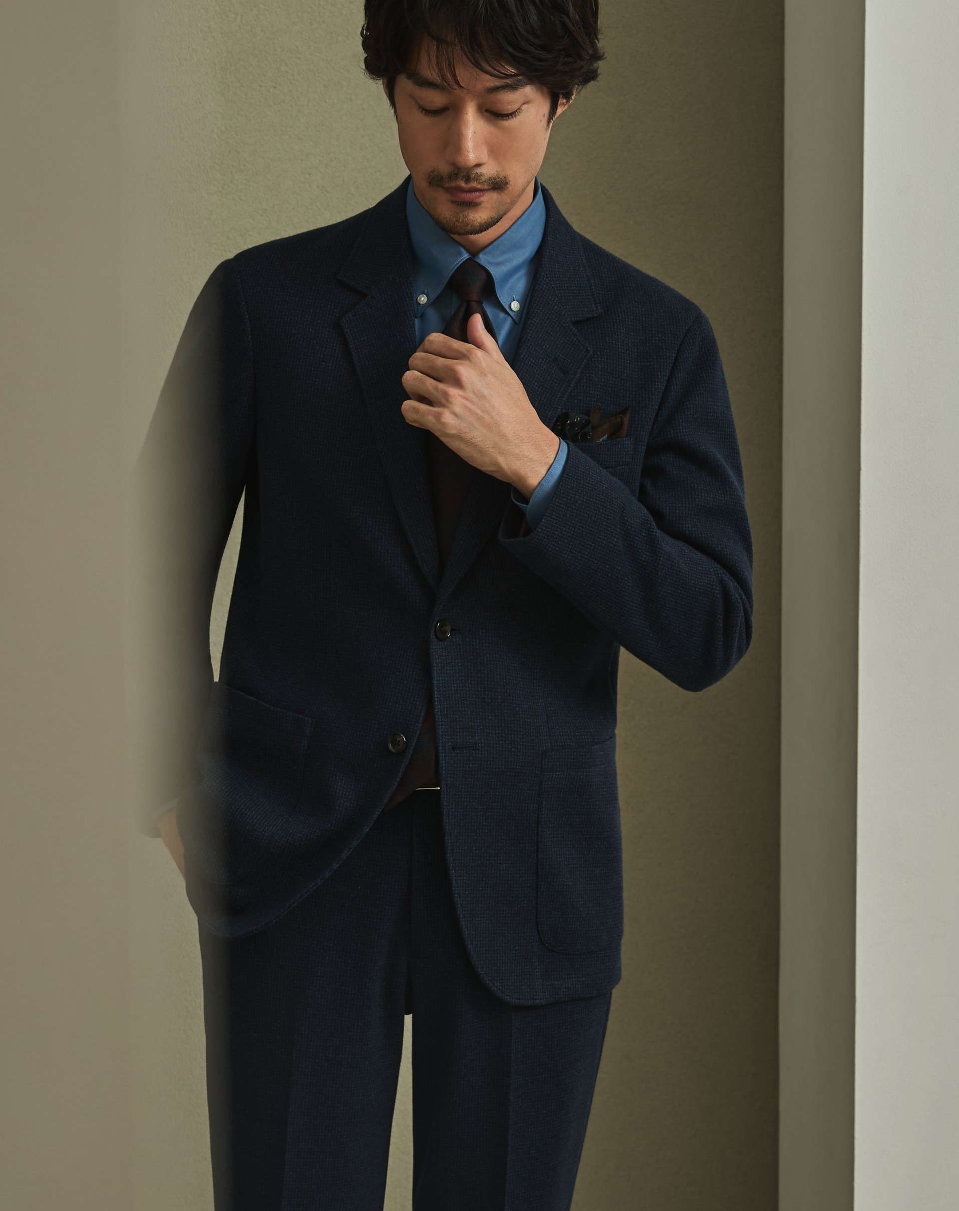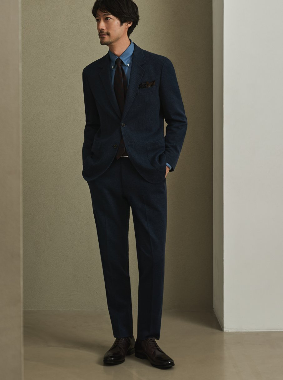 その柔らかさと滑らかさで、世界的な知名度をもつ尾州マテリアル。ひと味ちがう高級感を味わえます。
