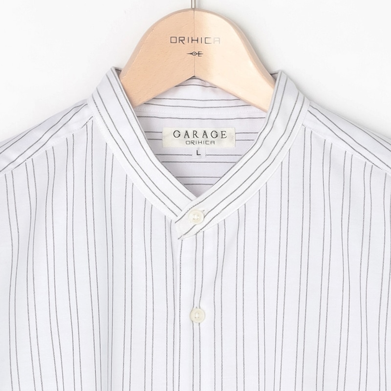 次に「スタンドカラー」は、襟羽がなく、帯状に台襟を通して立った襟の形をしたシャツになります。