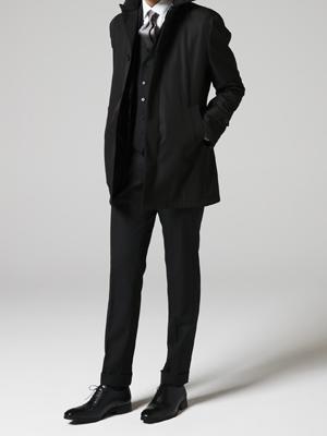 ネイビーや黒のチェスターコートを選べば、ダーク系のスーツにすんなりと馴染んで初心者でも簡単に着こなせます。