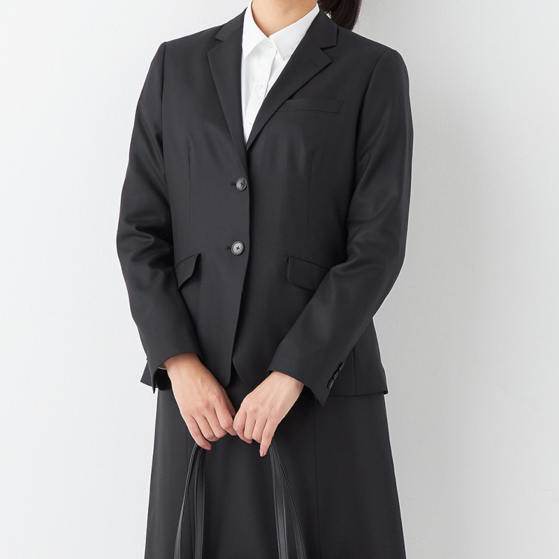 2つのスーツは、素材や生地にも違いが見られます。リクルートスーツの素材は、就職活動という着用シーンを想定して、シワになりにくく自宅でのお手入れがしやすいポリエステル混素材が選ばれる傾向にあります。その一方で、入社後のビジネスシーンでも長く愛用することを前提に、柔らかな質感があるウールを配合したリクルートスーツも多く展開されています。