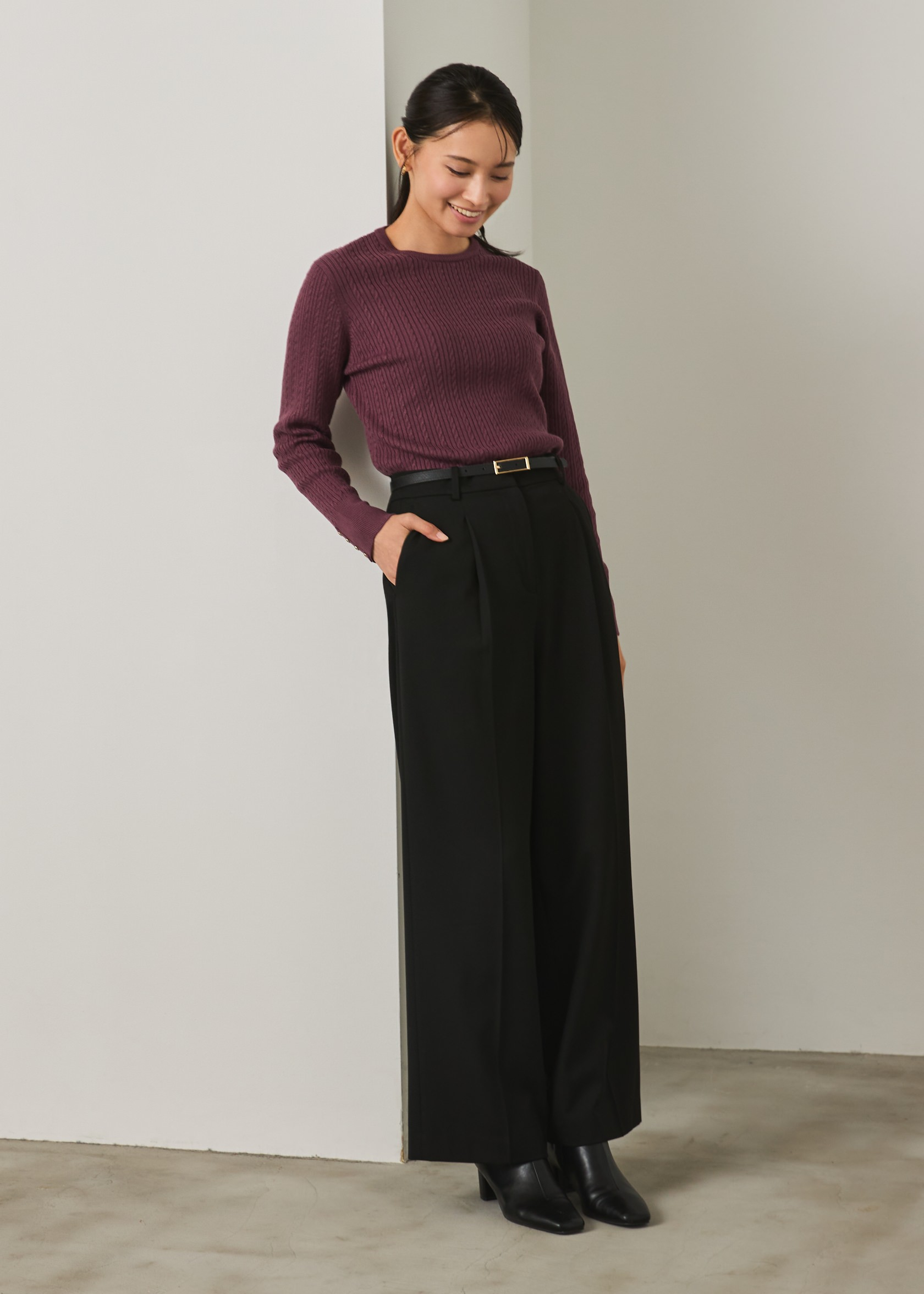 気温が下がっても快適な美脚ライフをお楽しみいただくために、裏起毛素材を採用した冬モデルも展開!ふんわり暖かなはき心地と計算されたワンタックワイドのシルエットです。