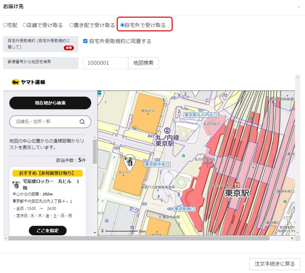 ※以下に該当する場合は、「自宅外受取」を選択出来ません。