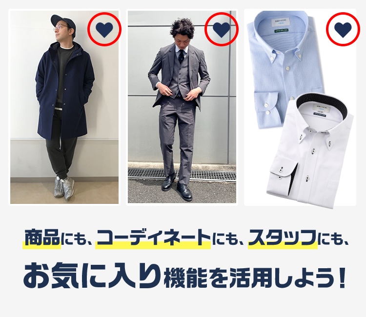 お気に入りのアイテムや、コーディネート、好みのスタイルを提案してくれるスタッフなど、「お気に入り」に登録すれば、すぐに欲しい情報がチェックができます。