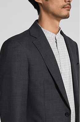一般的なスーツに比べて着丈を若干短めにすることで、ジャケットとして着用した際にも軽やかな印象に。スーツとして使用しても違和感のない、絶妙な長さに設定しています。