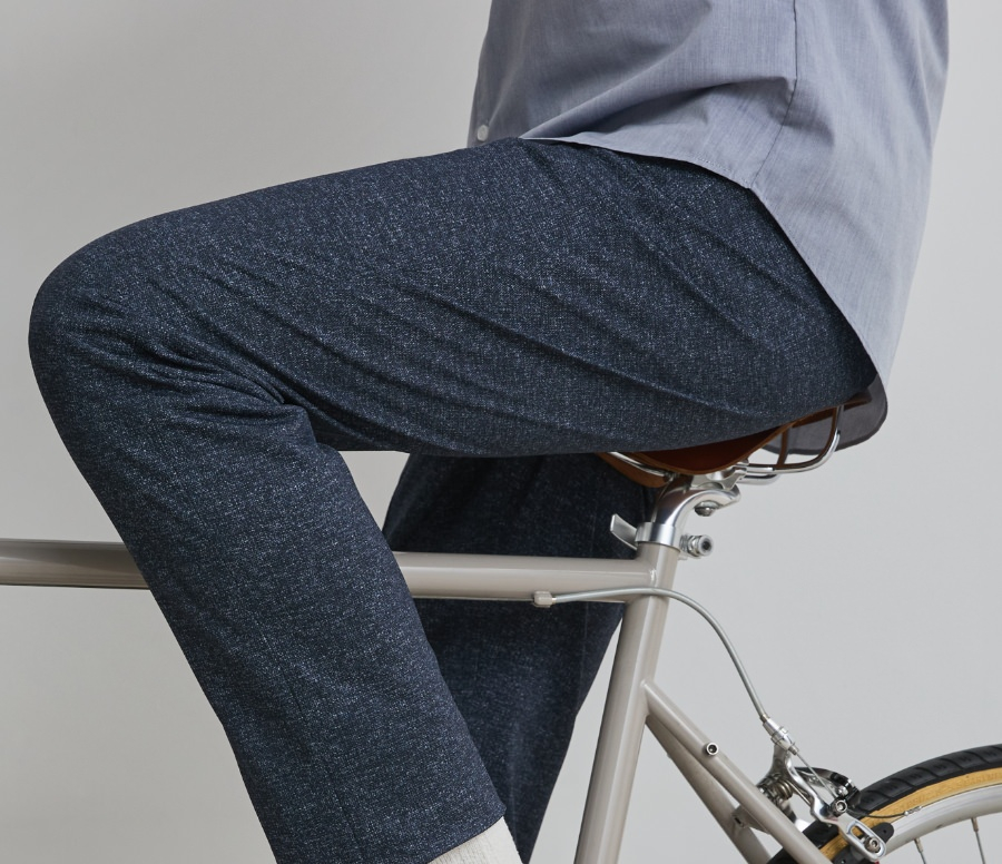 縦にも横にもぐんぐん伸びるストレッチ生地だから、立ったり座ったり、自転車に乗っても楽ちん。