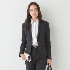 ウールのようなナチュラル感が特徴の梳毛調のストレッチ素材「TRIXION(トリクシオン)®」を使用し、優れたストレッチ性と腕回りのパワーネット仕様で動きやすさと美しい仕立て映えを実現した“洗えるストレッチセットアップのジャケットです。