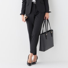 ウールのようなナチュラル感が特徴の梳毛調のストレッチ素材「TRIXION(トリクシオン)®」を使用し、優れたストレッチ性と腕回りのパワーネット仕様で動きやすさと美しい仕立て映えを実現した“洗えるストレッチセットアップのスカートです。