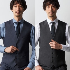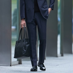 - ・スーツ工場での縫製。スーツに比べ軽い着心地ながら、立体的で体に沿った着用感でキチンと見え。