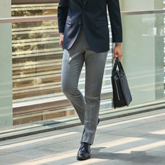 ウエストストレッチ仕様で外見は通常のマーベルトですが、内側にゴムが入っているため自然にウエストになじみ、食事後や椅子に座る際など重宝する単品スラックスです。