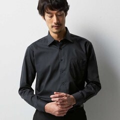 [アウトレット]スーパーノンアイロンコットンシャツ 黒ワイドカラー 織柄