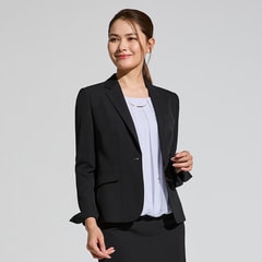 ウールのようなナチュラル感が特徴の梳毛調のストレッチ素材「TRIXION(トリクシオン)®」を使用し、優れたストレッチ性と腕回りのパワーネット仕様で動きやすさと美しい仕立て映えを実現した“洗えるストレッチセットアップ”です。